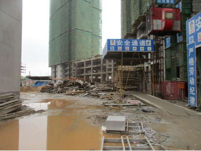 C. 材料堆放混乱无序