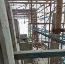 如图所示钢管附着式升降脚手架,存在哪些问题?()