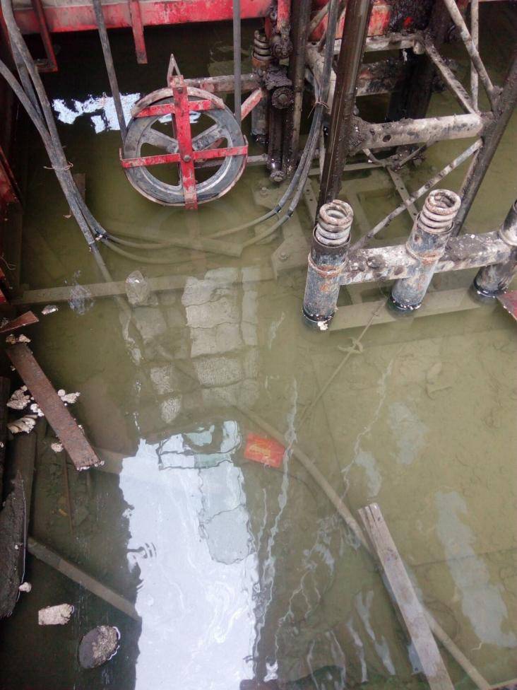 A. 施工电梯基础严重积水