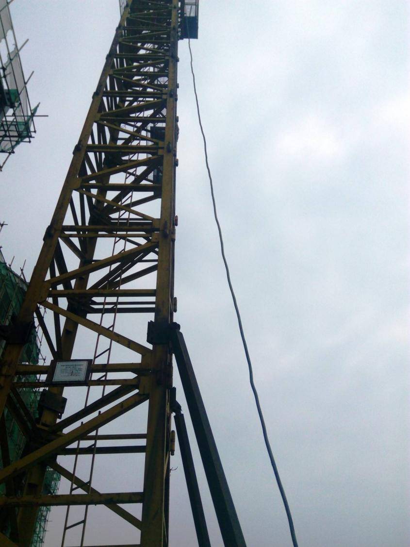 图中存在的违规情况是塔式起重机电缆未按规范固定。