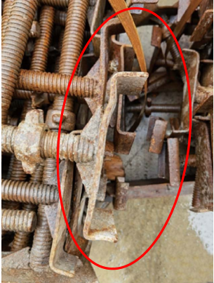 图中可调托撑变形导致其承载力降低,如经技术人员同意可继续使用。