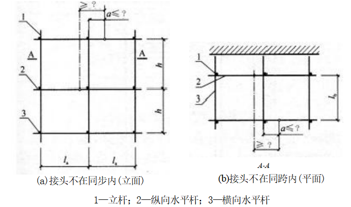 下图是脚手架纵向水平杆接长示意图,下面关于其设置描述正确的是( )。