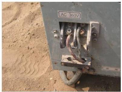 D. 焊机接线柱无防护罩