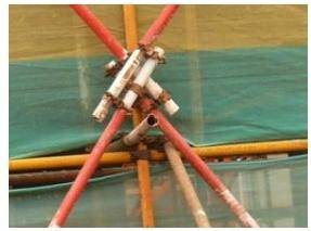 C. 脚手架剪刀撑搭接部位的扣件边缘至杆端距离不足