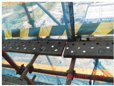 D. 脚手架作业层上的脚手板探头板过长