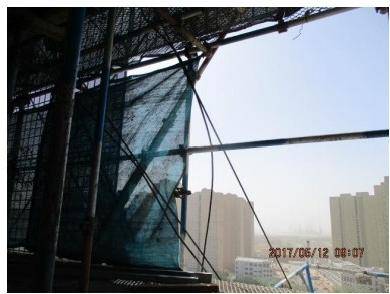 D. 卸料平台吊拉钢丝绳与架体接触