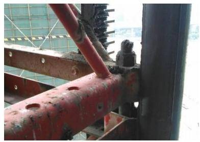 指出施工升降机导轨架连接螺栓存在问题( )。