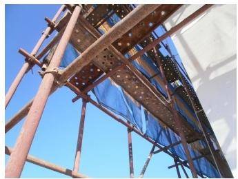 B. 脚手架水平杆缺少扣件