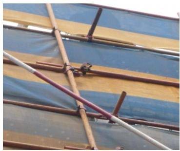 A. 脚手架剪刀撑与立杆或横向水平杆的外伸端没有固定