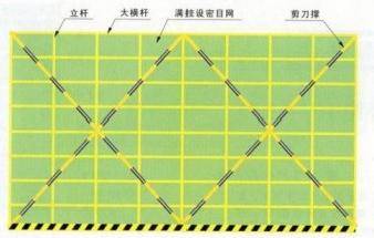 下图是脚手架剪刀撑的搭设示意图,下面关于其设置描述正确的是:( )