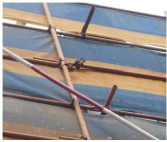 A. 脚手架剪刀撑与立杆或横向水平杆的外伸端没有固定