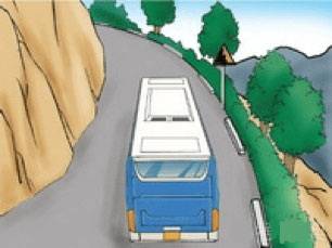 驾驶客车在图中所示的山区道路上坡转弯路段行驶,要注意的事项有()。