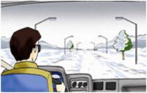 驾驶客车在图中所示的雪天行驶,忌紧急制动。
